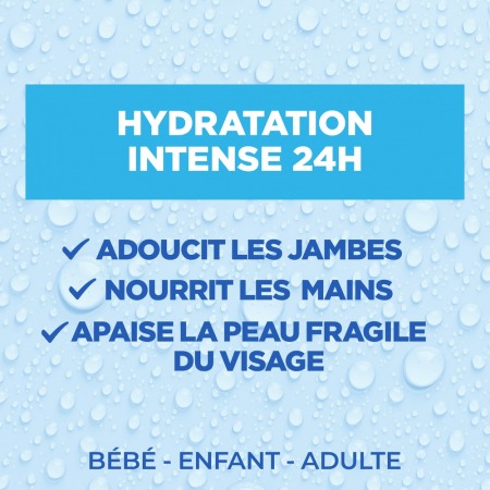 Une formule enrichie en huiles 100% végétales de karité, d’amande douce et de soja, de la glycérine et de l’acide hyaluronique pour hydrater immédiatement les peaux sèches et sensibles pendant 24h. Une crème qui adoucit les jambes, nourrit les mains et apaise la peau fragile du visage.