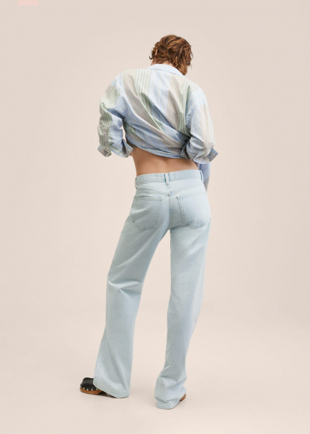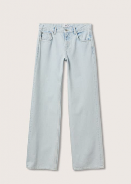 Tissu en coton de style jean. Coupe wideleg. Coupe longue. Taille basse. Délavé bleach. Passants pour la ceinture. Cinq poches. Fermeture Éclair avec bouton.