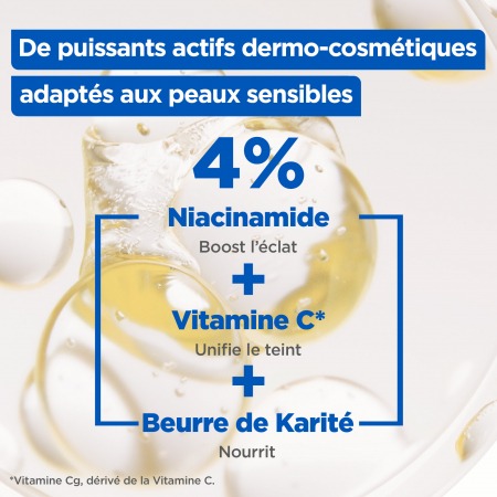 NOUVEAU – Le Lait Niacinamide Correction Eclat, hydratant et unifiant, est idéal pour les peaux sèches et ternes. Il corrige les irrégularités de texture et de teint pour toutes les carnations de peau. Texture non grasse, non collante. Pénètre rapidement.