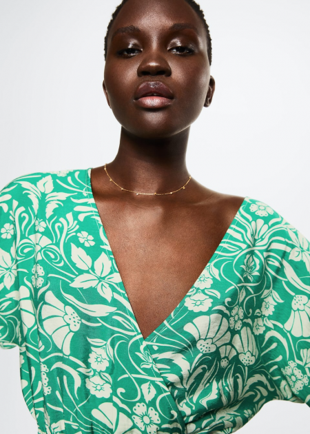 Robe fluide imprimée Vert MangoRobe fluide imprimé à fleurRobe fluide imprimée Vert Mango