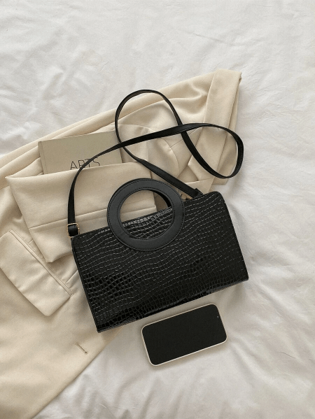 Sac carré en relief de crocodile Argenté