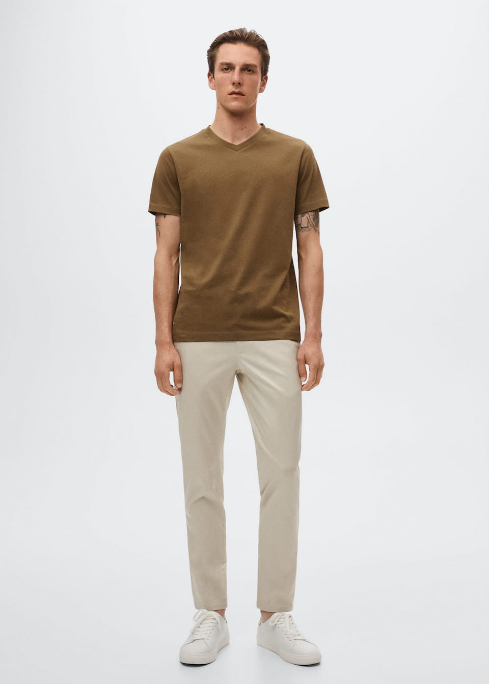 Collection Essentiels. Regular-fit. Tissu en coton durable. Col en V. Manches courtes. Le mannequin mesure 187 cm et porte une taille M.